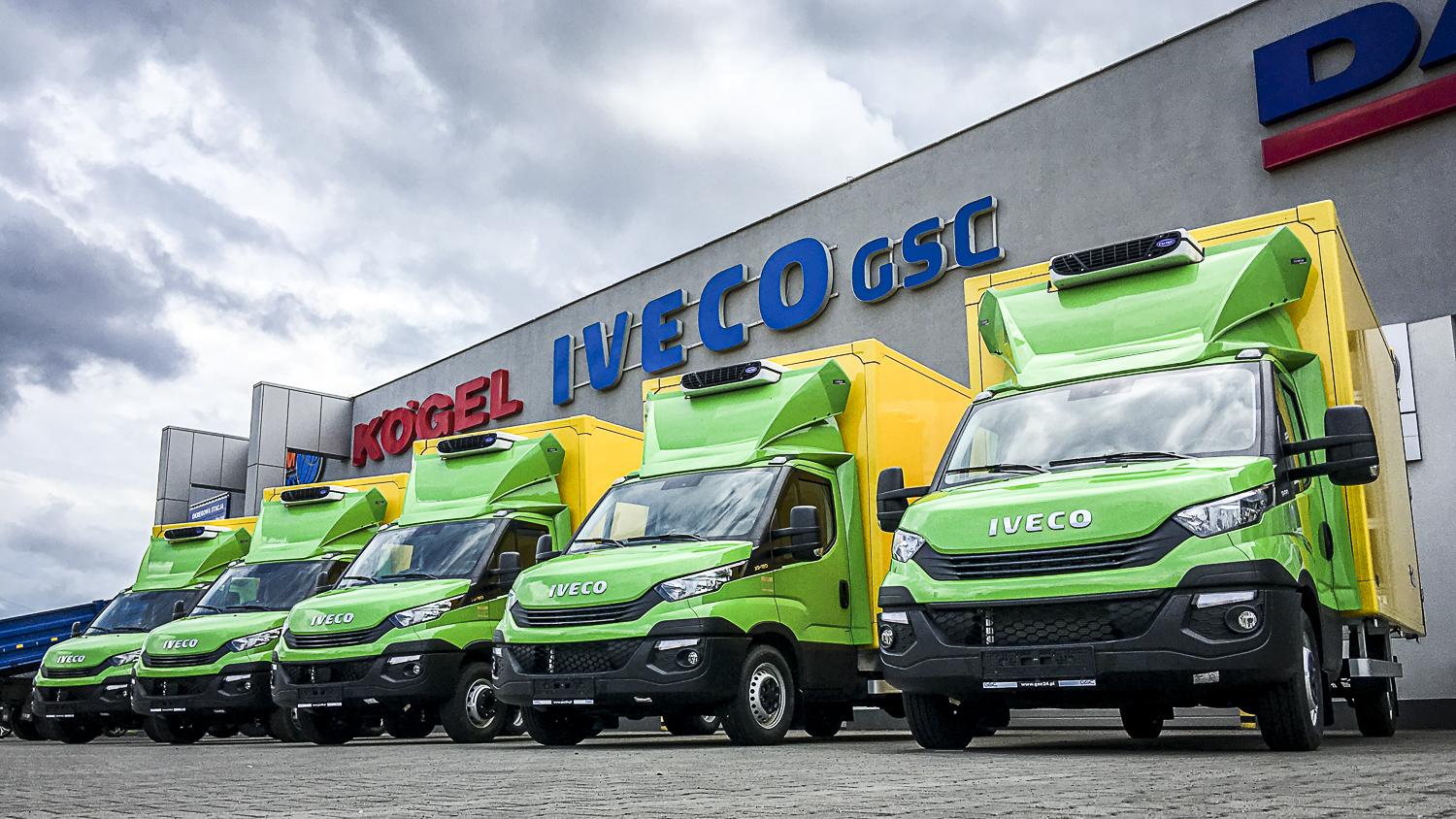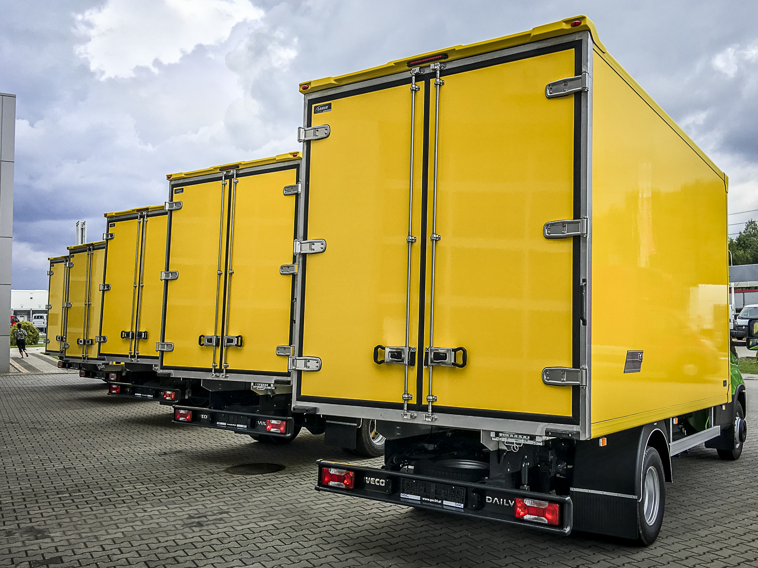 Firma AMI, państwa Aksamskich zakupiła u nas 5 szt. IVECO DAILY w ich firmowych kolorach. Pojazdy zabudowane kontenerem od LAMAR i agregatem chłodzącym od Carrier Thailand przy czym 2 z pięciu Daily są z jednymi z najpopularniejszych konfiguracji ramy i silnika - 35180 DMC do 3,5t oraz mocy 180KM, natomiast pozostałe 3 sztuki to 72180 czyli oferowane przez Daily największą DMC do 7,2t oraz 180KM, oczywiście z zamontowanymi najnowszymi tachografami 4.0, które obowiązują od czerwca tego roku.